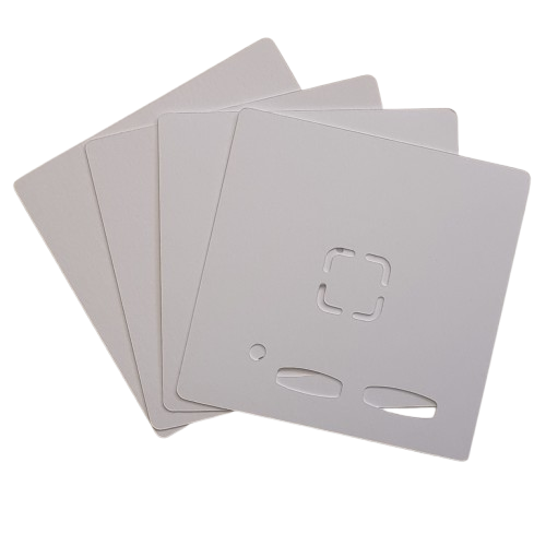 Dieses Set enthält 4 Blanko-Einleger (300 g/m² Spezialkarton, matt-weiß), passgenau für unsere transparente Schutzhülle. Einfach bemalen, beschriften oder bekleben – einlegen, Hülle aufklicken, fertig!