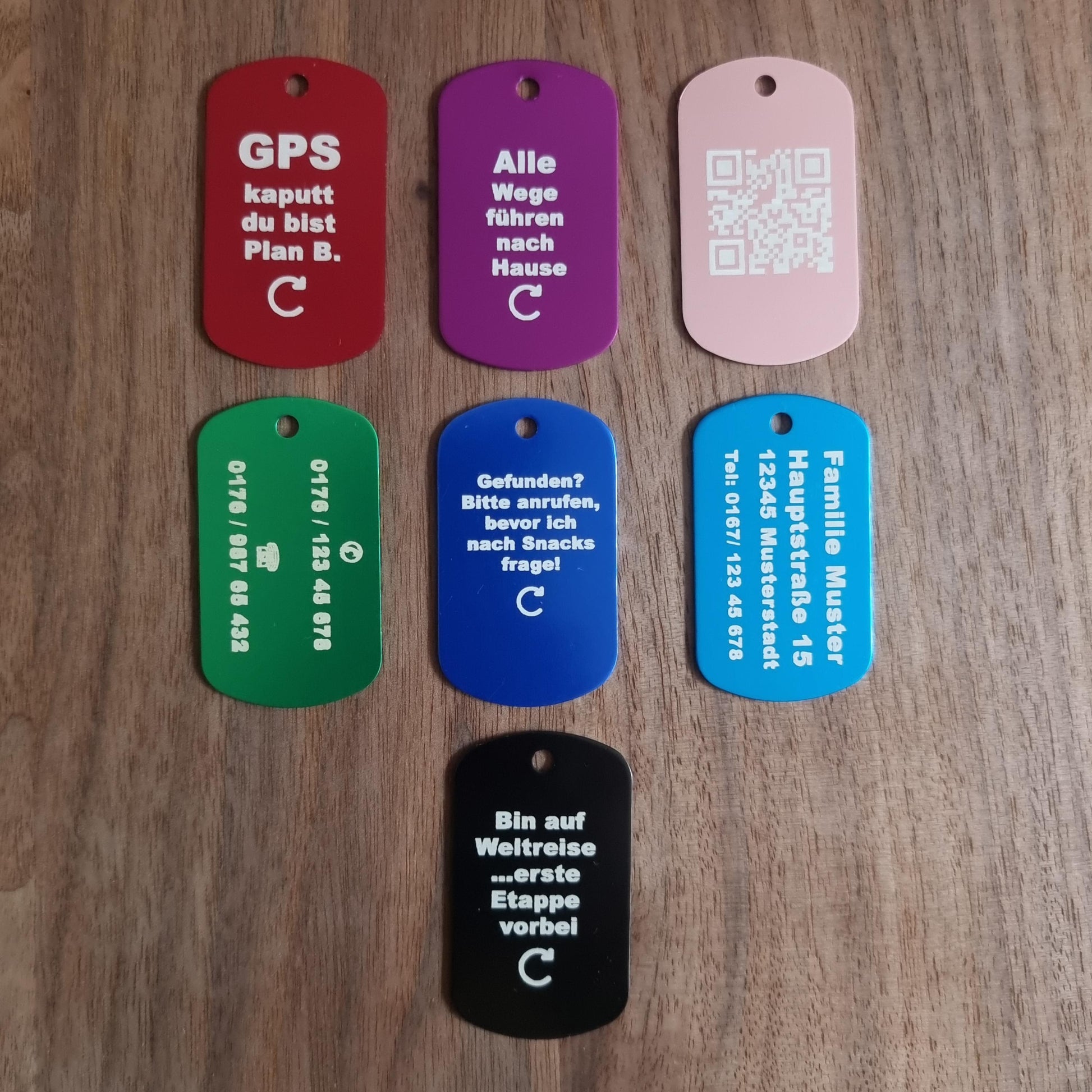 Gefertigt aus robustem Material und in verschiedenen modernen Farben erhältlich, eignen sie sich ideal als Schmuckstück, Geschenk, Erinnerungsstück oder auch als praktischer Namensanhänger für Mensch und Tier.