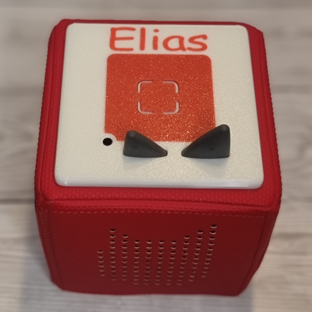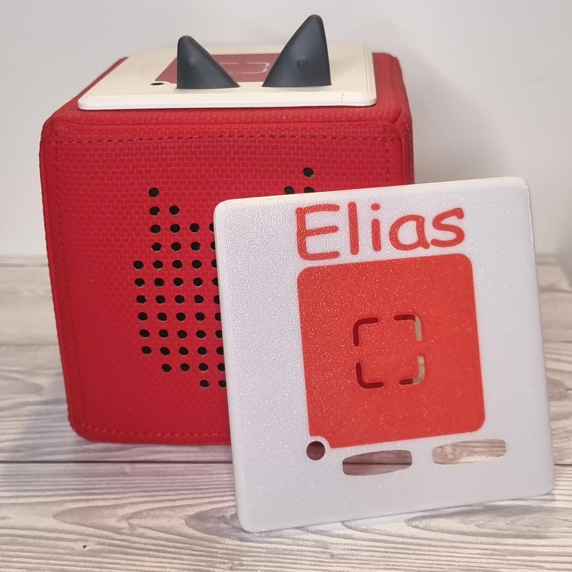 Dieses Produkt ist eine abnehmbare Plattform-Abdeckung mit Namen aus robustem PETG-Hartplastik, passgenau gefertigt für die Toniebox.