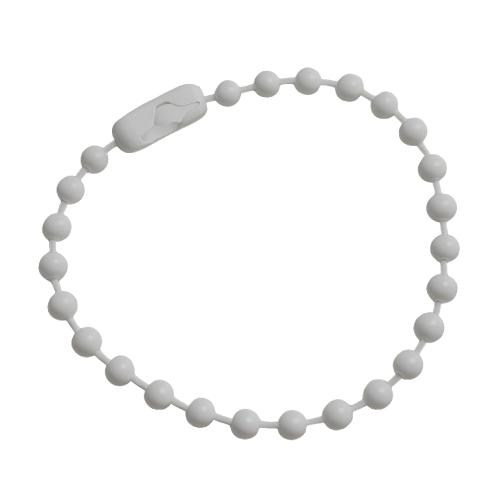 Die Ballkette ist ca. 12 cm lang und besteht aus gleichmäßig geformten Metallkügelchen mit einem Durchmesser von etwa 2 mm. Jedes Kügelchen ist durch winzige, stabile Verbindungsstücke aus verchromtem Stahl verbunden, was der Kette eine gleichmäßige, flexible Linienführung verleiht.