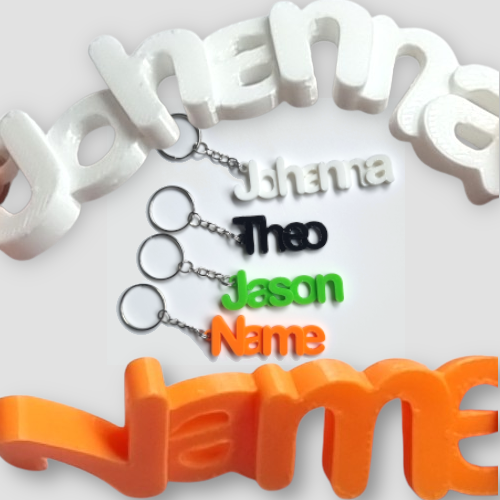 Mach deinen Schlüsselbund einzigartig – mit einem 3D-gedruckten Name-Anhänger aus flexiblen TPU (flexibler Kunststoff).