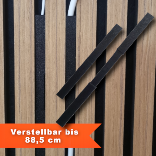 Unser 3-teiliges Steck-&-Schiebe-System aus robustem PETG passt in die Lamellen-Zwischenräume fast aller gängigen Paneele